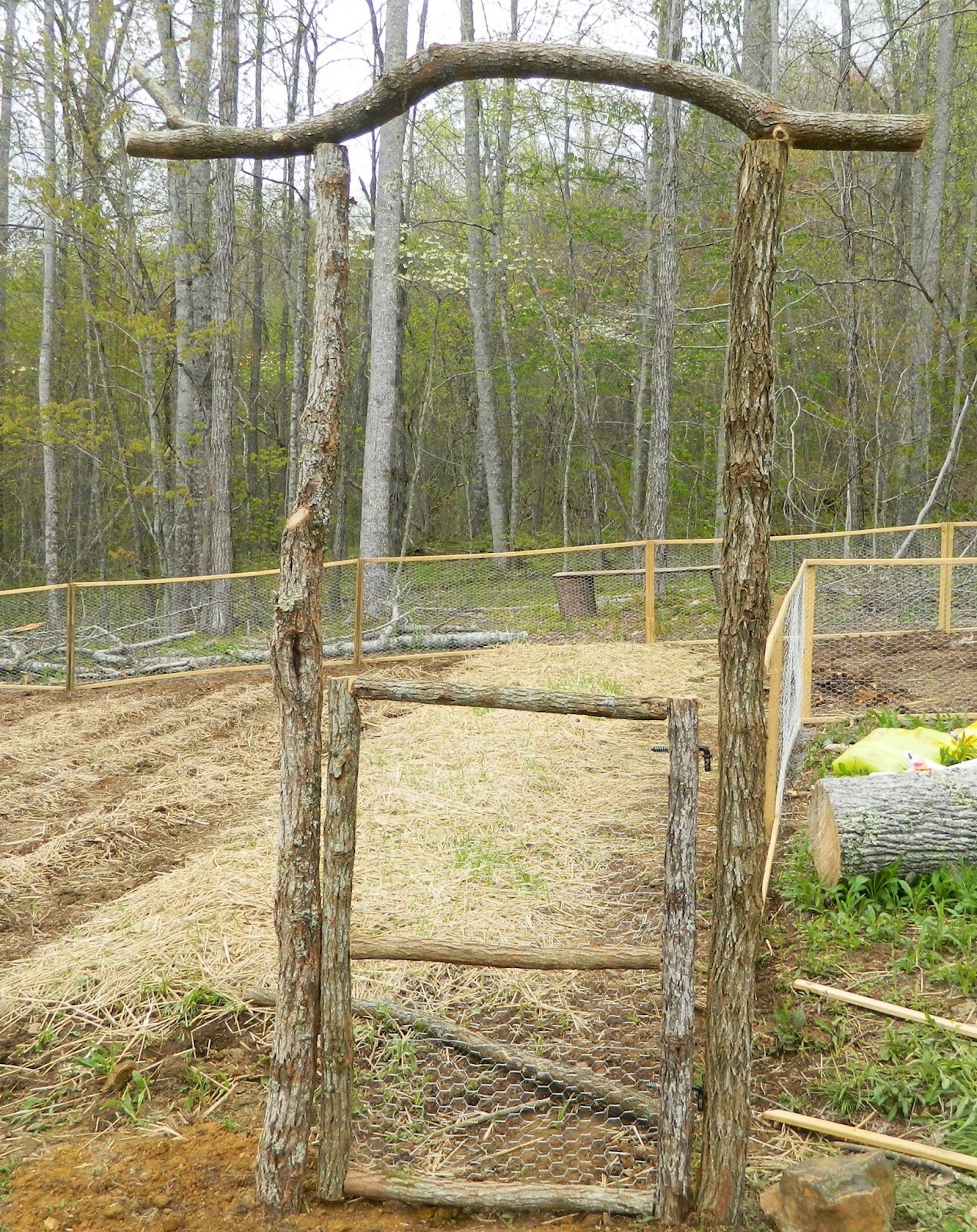 How to build a log gate. A simple mod to allow your to build gates out of your log walls. We used small trees from our land and some large hinges from the hardware store. Use 2.5” timber screws when attaching the end of the hinge to the post.